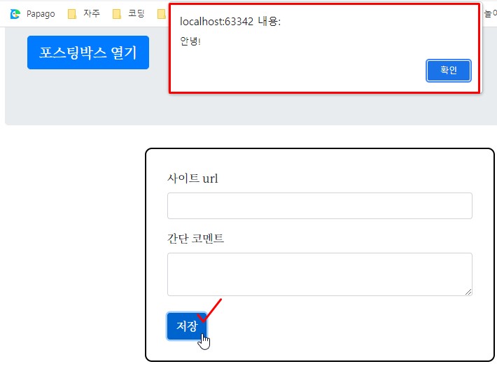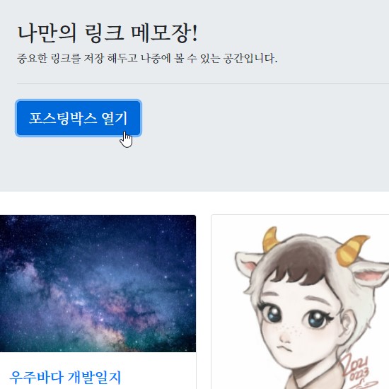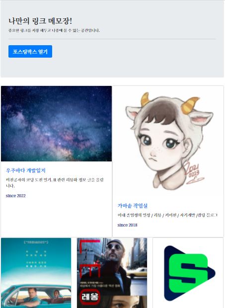 과제 : 나만의 메모장 카드들에 들어갈 데이터를 불러오는 api 적용하기. frontend > index.html 파일로 작업 (나만의 링크 메모장) *코드 스니펫 1. api 2. 로딩 후 바로 실행 $(document).ready(function () { listing(); }); function listing() { console.log('실행확인'); } 로딩 후 바로 실행하는 코드 붙여 넣고 콘솔 창에서 연결 확인. console.log 대신 ajax 기본 코드. $(document).ready(function () { listing(); }); function listing() { $.ajax({ type: "GET", url: "http://spartacodingclub.shop/post",..